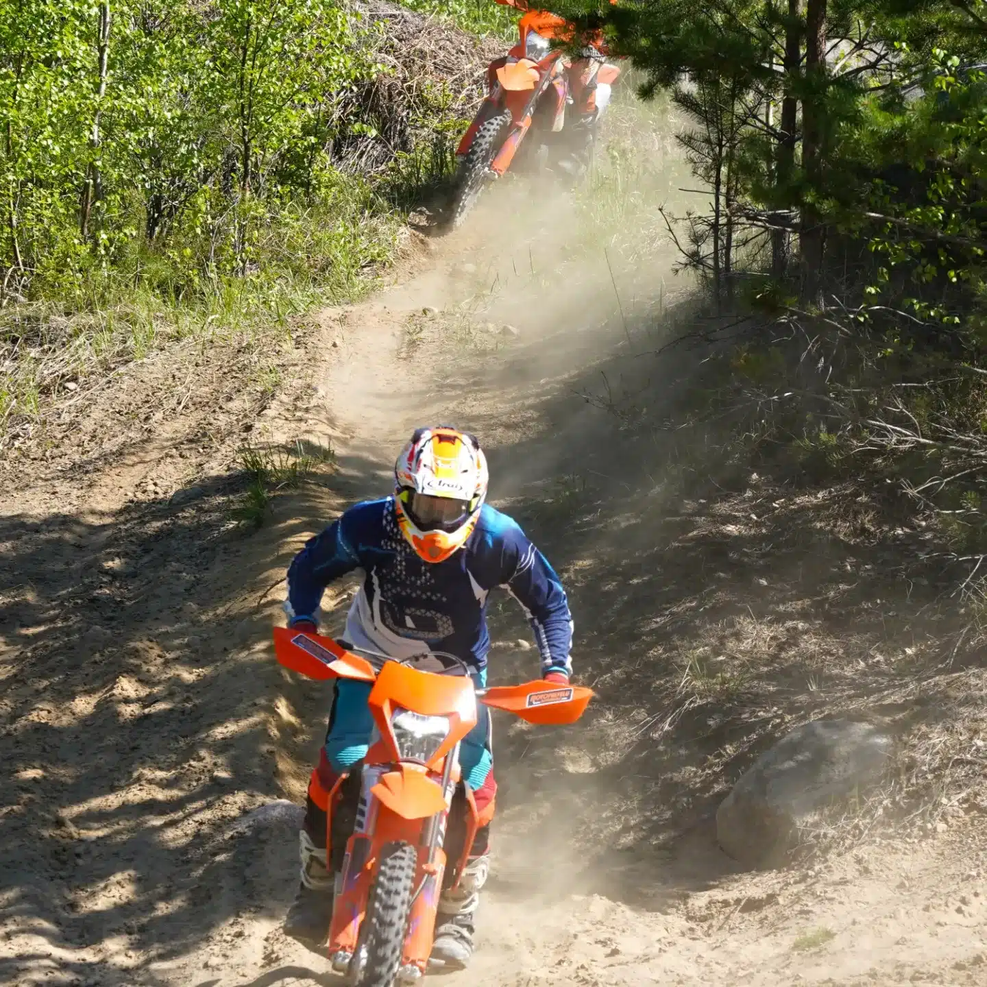 Enduron perusajotaidon omaaville, jotka pystyvät ajamaan maastossa vaihtelevia reittejä. Jatkoa Endurostart- opi lisää tai vastaavat taidot omaaville kuskeille. Ajamme yhdessä ryhmänä ja välillä mietimme, miten Sinun kannattaisi ajaa erilaisissa maastoissa. Tämä on kurssi, jossa ajamme enemmän toistoja ja kilometrejä koulutuksen sijaan.